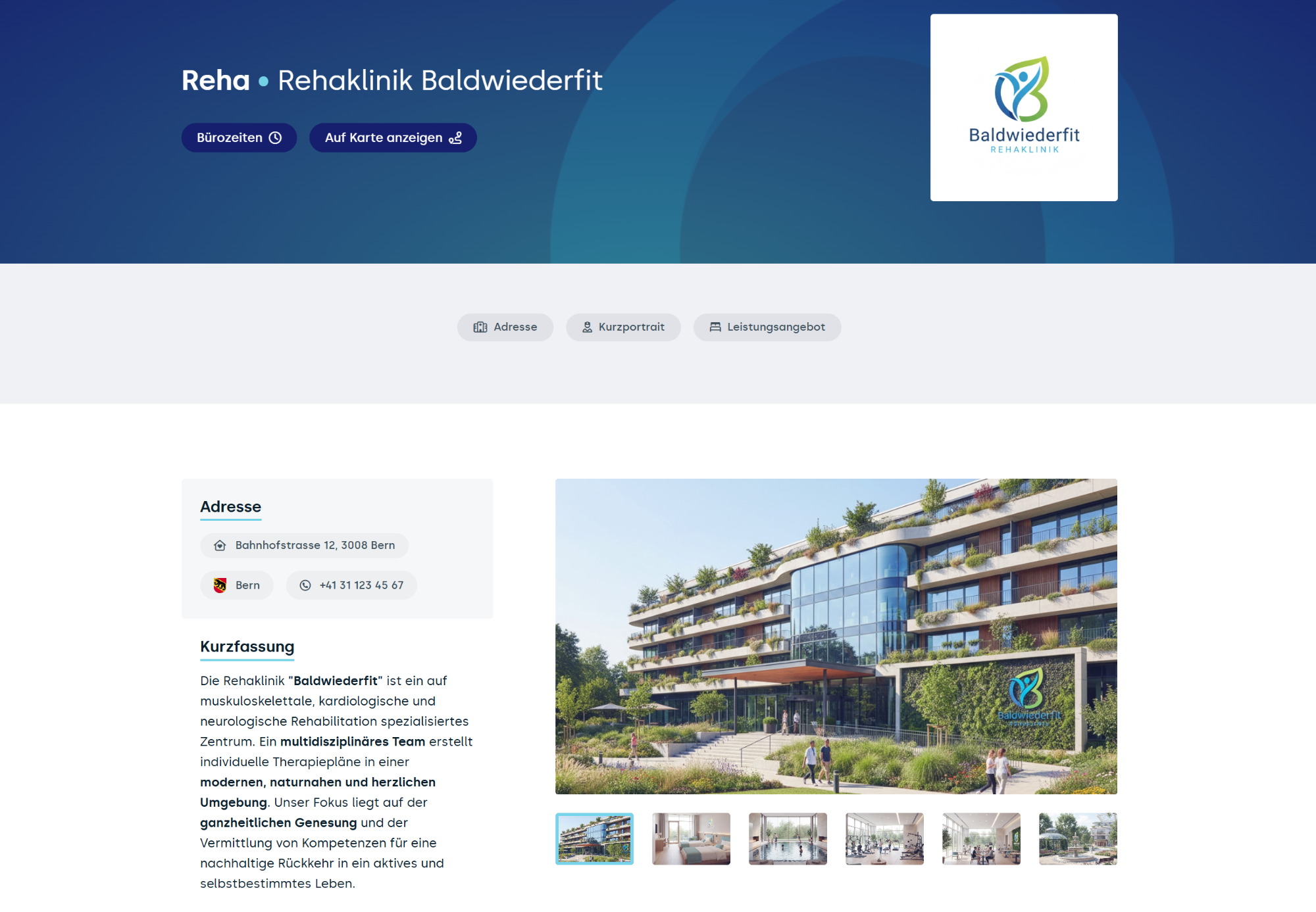 Here you will find the demo profile of the fictitious rehabilitation clinic “Baldwiederfit”.